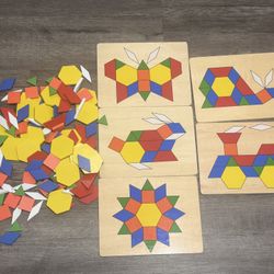 Melissa & Doug Pattern Blocks and Boards with 120 Multi-Colored Wooden Shape Tiles, 5 Double-Sided Puzzle Boards, Tangram Puzzles, Montessori Toys for$10Los Angeles, CA