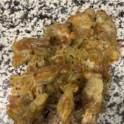 CHINESE CARVED FIGURAL Fish Vintage SOAPSTONE SHOUSHAN STONE Large Heavy$500Monterey Park, CA