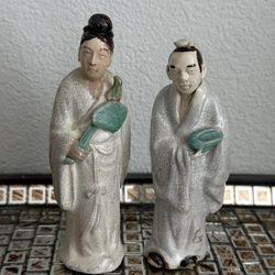 Rare Antique 1930’s Pair of Crackled Porcelain Chinese Man & Woman Mudmen $160Calabasas, CA