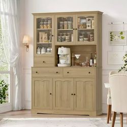 Homfa 74.2'' Tall Kitchen Pantry Cabinet with Glass Doors, Large Hutched Storage Cabinet with Adjustable Shelf for Dining Room Living Room, Oak$160Monterey Park, CA