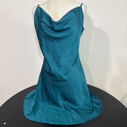 Teal Satin Cowl Neck Slip Dress | 90s Minimalist Satin Dress$10Norwalk, CA