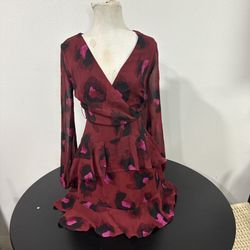 Love Fire Burgundy Floral Ruffle Mini Dress | Long Sleeve Wrap Style$8Norwalk, CA