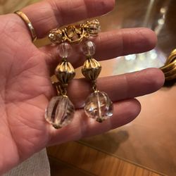 1960s Golden Crystal Dangle Clip On Earrings: Vintage $20Pico Rivera, CA