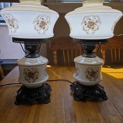 Vintage Floral Milk Glass Table Lamps – Matching Pair – Victorian Style – $150 obo$150Pasadena, CA
