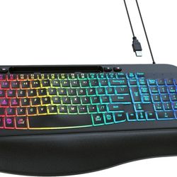 Wired Ergonomic Keyboard, 7-Color Backlit USB Computer Keyboard with Wrist Rest, Wave Keys, Phone Holder, Lighted Keyboard Compatible with PC$20Carson, CA
