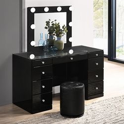 Brand New Black Glossy Vanity Storage On Both Sides led Mirror and Matching Stool$650Hacienda Heights, CA