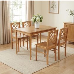 5-Piece Solid Wood Dining Table Set for 4, Farmhouse Rectangular Kitchen Table with 4 Soild Chairs, Space-Saving Design for Small Dining Room, Apartme$150El Monte, CA