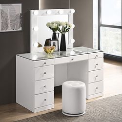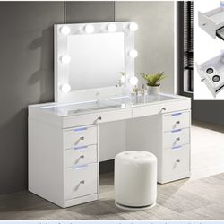 Brand New White Vanity With Led Drawers Glass Top Led Mirror Financing Available Free Delivery $750Hacienda Heights, CA
