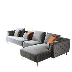 Modern Mid Century Modern Sectional Sofa Grey Velvet Upholstery ✅ $499 No Tax$499Pasadena, CA
