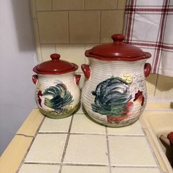 2PC Kitchen Canisters Susan Winget Le Rooster Jars$35Huntington Park, CA