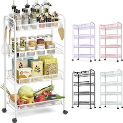 TOOLF 4-Tier Rolling Cart, Metal Utility Cart with 3 Hooks, Easy Assemble Mobile Storage Trolley On Wheels, Metal Shelving Units Kitchen Bathroom Laun$18Bellflower, CA