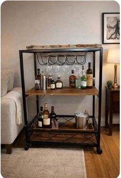 Industrial Rolling Bar Cart with Wine Glass Rack & Storage Shelves- Removable Tray$49La Habra Heights, CA
