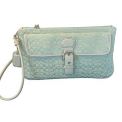 Coach Light Blue Signature Jacquard White Leather Wristlet$75Pompano Beach, FL