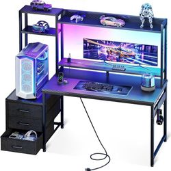 48 Inch Gaming Desk with Hutch & 3 Fabric Drawers, Computer Desk with USB Ports & LED Lights, Reversible Pc Gamer Table with Monitor Stand $50Ontario, CA