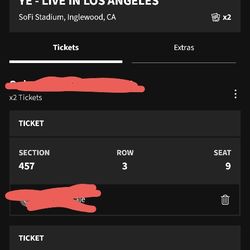 Kanye West Tickets (2 Tickets Sofi) Or Best Offer$600Santa Ana, CA