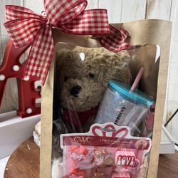 Valentines Gift Bag,Teddy Bear,Starbucks Tumbler And 6 Pieces Straw Topper’s $25Fontana, CA