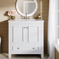 ZF0006-YN Bathroom Vanity with Sink, Solid Wood Frame Freestanding Vanity with Door Organizer and Drawer$135La Mirada, CA