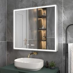 Glare 36-in x 32-in Lighted LED Fog Free Surface/Recessed Mount Moonlit Silver Mirrored Rectangle Soft Close Medicine Cabinet with Outlet$310Ontario, CA