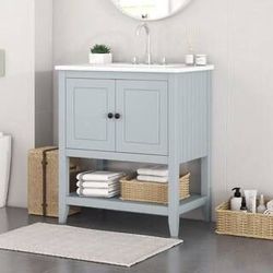 NEW Gray 24 in. W x 18 in. D x 33 in. H Single Sink Freestanding Bath Vanity with White Ceramic Top$240Arcadia, CA
