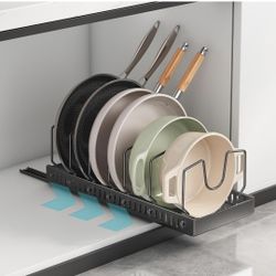 Pot Lid Organizer, Pull-out Pots and Pans Organizer, Under Cabinet Pot Lid Holder for Kitchen, Pots and Pans Storage with 8 Adjustable Dividers (Black$15South Gate, CA