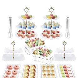 12 Pcs Cake Stand, Dessert Table Display Set, 4 Pcs Tiered Cupcake Stand Holder 2Pcs Cake Pop Stand 4Pcs Serving Tray and 2 Tongs for Tea Party Baby S$25South Gate, CA