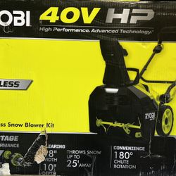 RYOBI SNOW BLOWER ((PRICE 55% OFF)) 40V HP Brushless 18 in. Single-Stage Cordless Electric Auger Propelled Snow Blower with 6.0 Ah Battery and Charger$250Montclair, CA
