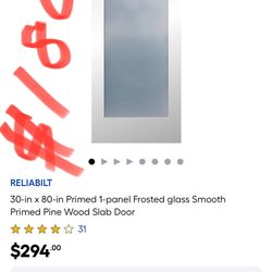 $/80 RELIABILT 30-in x 80-in Primed 1-panel Frosted glass Smooth Primed Pine Wood Slab Door$180Carson, CA