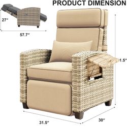 Garvee Outdoor Recliner Chair, 145° Adjustable Backrest & Footrest Lounge Chair with Removable Cushion and Flip-Up Side Table, All-Weather PE Wicker &$150Chino, CA