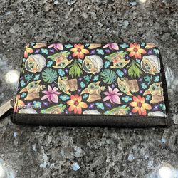 Star Wars Wallet, Zip Around, Star Wars The Child Poses and Floral Collage Black Multi, Vegan Leather. Brand new never used $25Artesia, CA