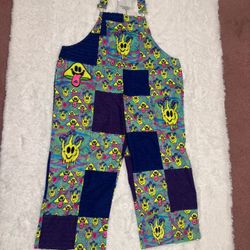 New 2x unisex neon patchwork overalls y2k pants festival rave happy face outfi$100Upland, CA