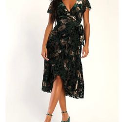 NWOT- Chic Status Emerald Green Floral Velvet Burnout Wrap MIDI Dress$28Jurupa Valley, CA
