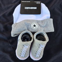 BABY CONVERSE BOYS GIRLS GRAY AND WHITE INFANT HAT AND BOOTIE SET 6-12 MONTHS$15Norwalk, CA