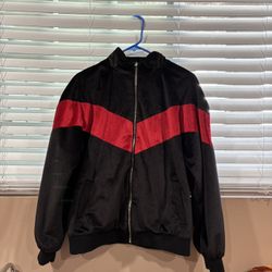 Forever 21 Velour Chevron Zip Up Track Jacket Black and Red Women’s Size Medium$10Downey, CA