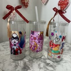 Carol G, Sailor Moon, Harley Quinn Kids Cup Set of 3 | BPA-Free Plastic Cups w/ Straw $20Artesia, CA