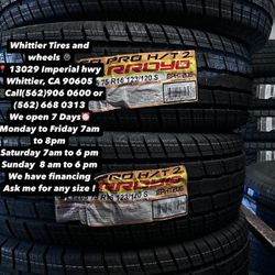 SET OF NEW TIRES 215/60R16 ARROYO, INCLUDING MOUNTING AND BALANCING. ASK ME FOR ANY SIZE OR BRAND, WE HAVE THE BEST PRICES OF CALIFORNIA$300Pico Rivera, CA
