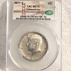 #483 Enhanced Unc 2017 S CAC MS70 Kennedy Coin $60Covina, CA