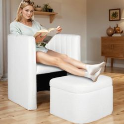 Reading Accent Chair with Storage Ottoman, Modern Living Room Armchair, Cream Boucle Upholstered Barrel Sherpa Chair with Footrest for Bedroom/Reading$80Anaheim, CA