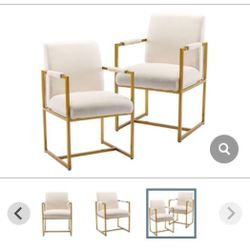Modern Dining Chairs Set of 2, Upholstered Boucle Dining Chairs with Gold Armrest and Black Metal Legs, Accent Armchairs for Kitchen, Living Room and $120Alta Loma, CA