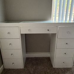 Vanity with Mirror and No Lights, 48" Glass Top Makeup Vanity Desk with 9 Drawers $140Pomona, CA