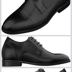 New Men’s Size 8 To 8.5 TOTO Men's Invisible Height Increasing Elevator Shoes - Black Premium Leather Lace-up Micro-Perforated Formal Derby Oxfords - $100Cty Of Cmmrce, CA