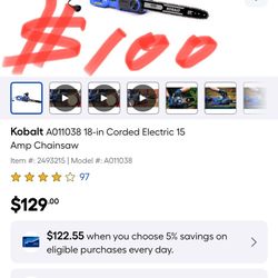 Kobalt A011038 18-in Corded Electric 15 Amp Chainsaw$100Carson, CA