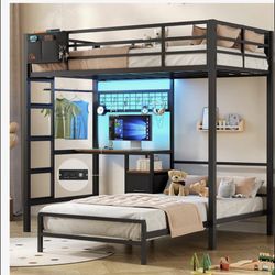 Like New Black Twin Size Metal Loft Bed with Built-in Desk and 2-Shelves, 2-Ladders$250Laguna Hills, CA