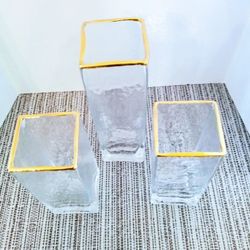 Set Of 3 "Hammered" Glass Vases w/Gold Trim Around The Top$17Rancho Cucamonga, CA