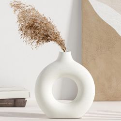 White Ceramic Boho Vase, Dount Vase for Pampas, Nordic Minimalism Style Matte Flower Vases for Farmhouse, Living Room, Table, Shelf Decor(Large)$30Montclair, CA