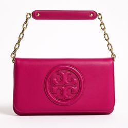 Tory Burch Amanda Leather Clutch / Shoulder Bag – Fuchsia Magenta – Gold Chain – Rare $129Lynwood, CA