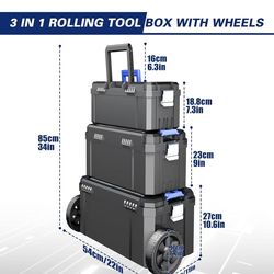 3 IN 1 Rolling Tool Box With Wheels,Stackable Tool Box,Modular Tools Storage Organizer,Top Small Parts Organizer Design,With Removable Small Parts Box$55Fontana, CA