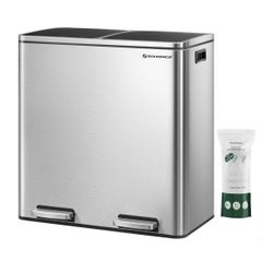SONGMICS 2 x 8 Gallon (2 x 30 L) Garbage Can 2 Compartments Plastic Hinged Lids w/ 15 Trash Bags - Silver$68San Gabriel, CA
