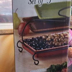 Stoneware Roped Edge Embossed Platters Wirh Rack$15Brea, CA
