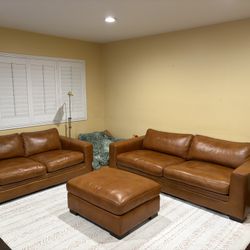 Mason Brown Leather Loveseat, Sofa And Ottoman (Living Spaces)$1,750Buena Park, CA