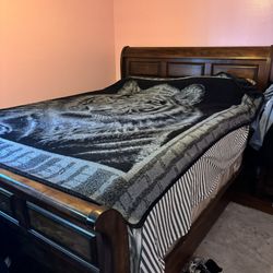 Dark Wood Bedroom Set. Includes Bed Frame,nightstand,dresser And Mirror $600Yorba Linda, CA